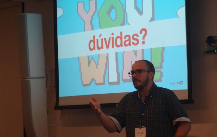 A palestra do gerente técnico para a América Latina do YouTube, Daniel Araújo, abordou o que devemos saber sobre a plataforma de vídeos e como ela vai mudar daqui para frente. Das falas de Daniel, o mais marcante foi sobre o conteúdo que pode ser tirado do ar. Diz ele: “As pessoas que reclamam de irregularidades nos vídeos podem solicitar a retirada através de um formulário digital e, não tem jeito, nós temos que suspender o material por dez dias para averiguação”.