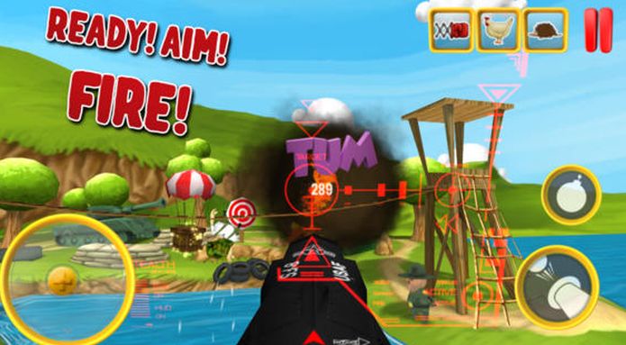 Selecionando uma fase, há muitos elementos no cenário. Você deve derrubar os inimigos da ponte, mas precisa acertar inimigos na água e nos arredores do cenário. Se você não se defender, sofrerá danos dos adversários, sendo que se tem apenas três corações. Itens no cenário podem potencializar suas balas. Dodge This não tem gráficos avançados, mas traz uma imersão agradável atrelada a um gameplay simples.