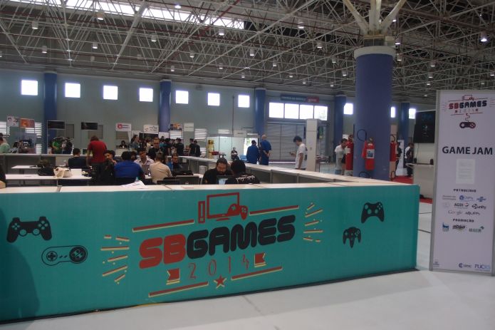 Esta é a área de Game Jam, onde as pessoas estão criando jogos na SBGames.