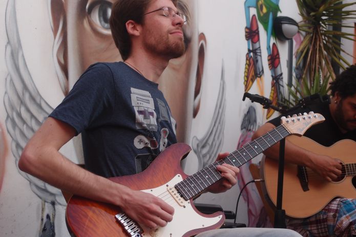Nosso leitor Daniel Redondo de Assis gravou o show da banda 2-Player, de Thiago Schiefer e Vitor Zafer, durante o primeiro Geek Music do bar GIBI, que ocorreu no último domingo (16) na Vila Mariana, em São Paulo. Geração Gamer cobriu o evento. Assista os vídeos aqui.