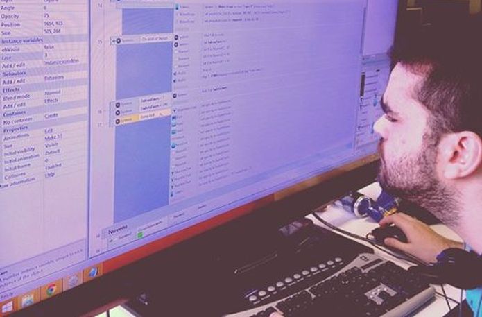 Na UNESP, em Bauru, no interior de São Paulo, mais desenvolvedores estão compenetrados no trabalho. Na imagem abaixo está Gabriel Naro, design de som da M.Gaia.