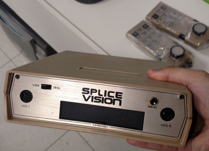 Os desenvolvedores da Smyowl também se divertem com velharias. Este é o Splice Vision, uma versão pirateada do console Coleco Vision de 1982, época em que ainda competiam com a Atari.